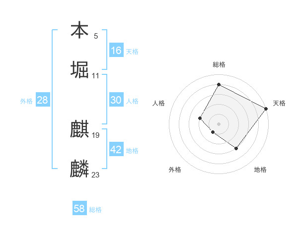 本堀 麒麟さんの天格は16画の5点!