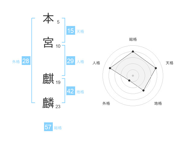 本宮 麒麟さんの総格は57画の4点!