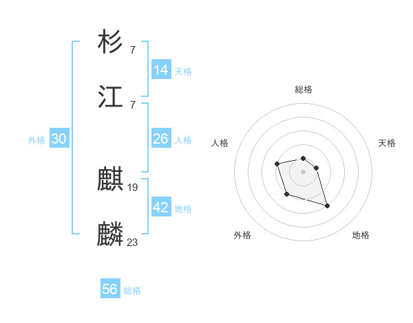 杉江 麒麟さんを姓名の画数から五運を鑑定