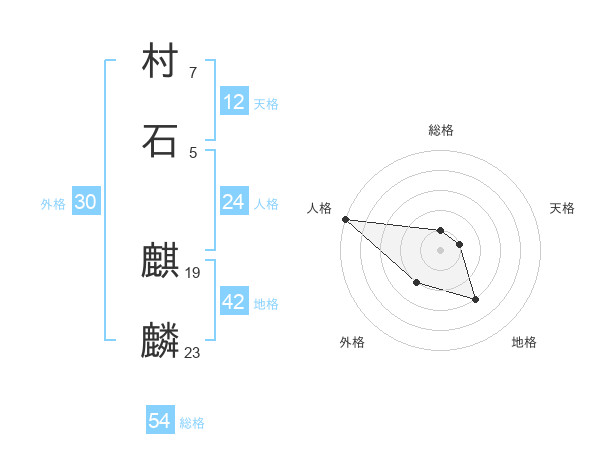 村石 麒麟さんの総格は54画の1点!