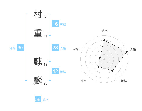 村重 麒麟さんの総格は58画の4点!