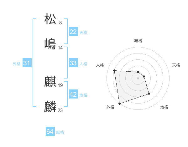 松嶋 麒麟さんの総格は64画の1点!