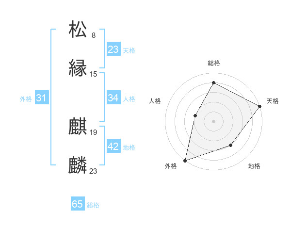 松縁 麒麟さんの総格は65画の4点!