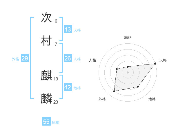次村 麒麟さんの総格は55画の1点!