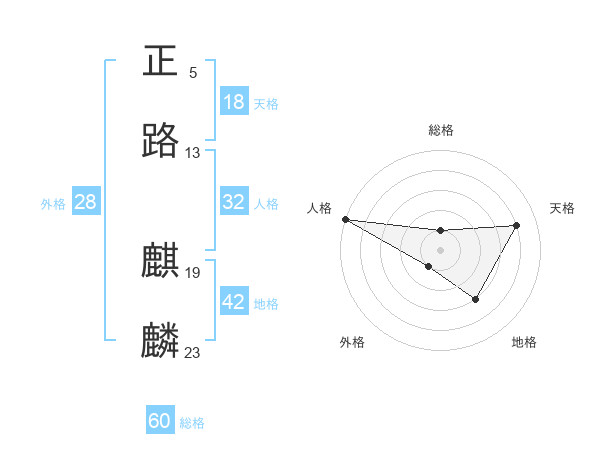 正路 麒麟さんを姓名の画数から五運を鑑定