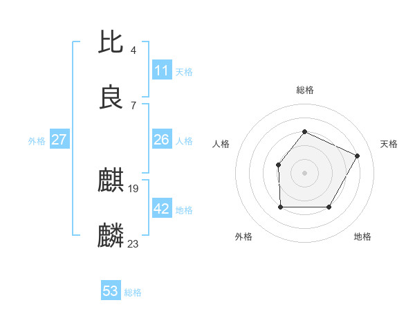 比良 麒麟さんの総格は53画の3点!