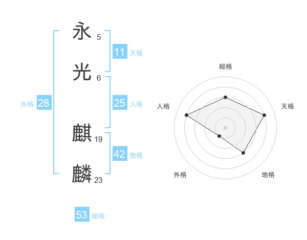永光 麒麟さんの総格は53画の3点!