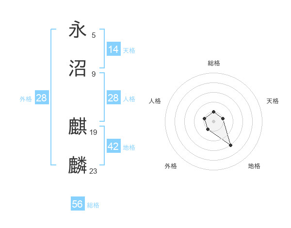 永沼 麒麟さんの総格は56画の1点!