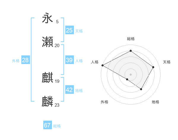 永瀬 麒麟さんの天格は25画の4点!
