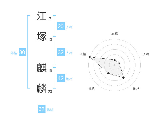 江塚 麒麟さんを姓名の画数から五運を鑑定