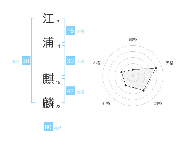 江浦 麒麟さんの総格は60画の1点!