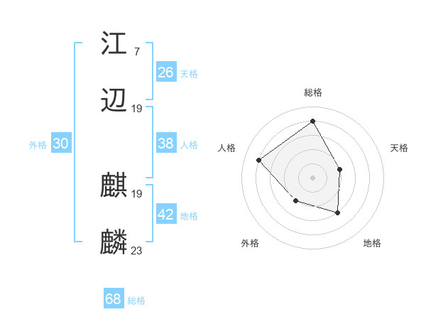 江辺 麒麟さんを姓名の画数から五運を鑑定