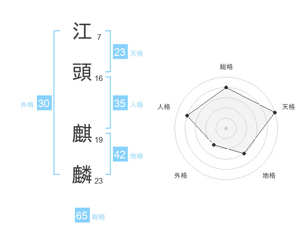 江頭 麒麟さんの総格は65画の4点!