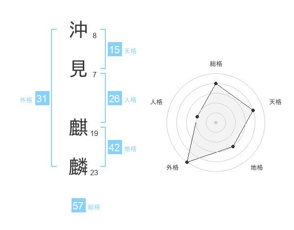 沖見 麒麟さんの総格は57画の4点!