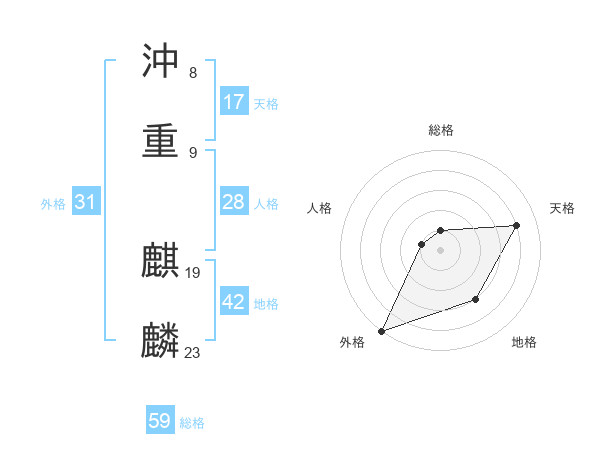 沖重 麒麟さんの総格は59画の1点!