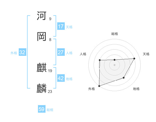 河岡 麒麟さんの総格は59画の1点!