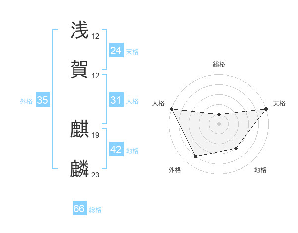 浅賀 麒麟さんの総格は66画の1点!