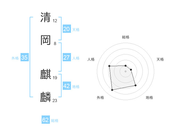 清岡 麒麟さんを姓名の画数から五運を鑑定