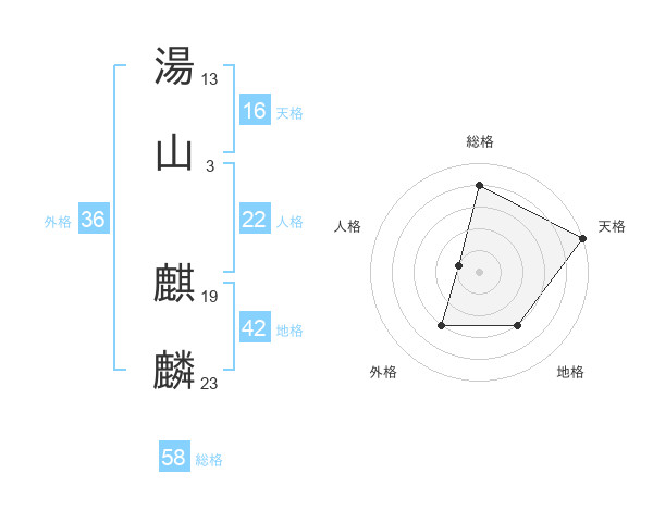 湯山 麒麟さんの総格は58画の4点!