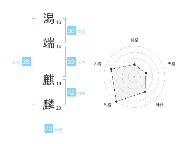 潟端 麒麟さんを姓名の画数から五運を鑑定