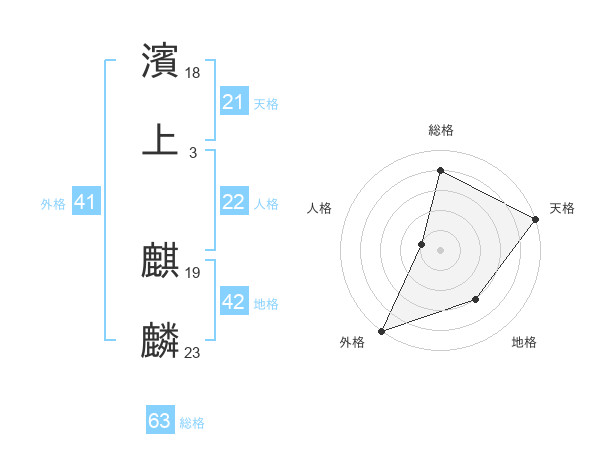 濱上 麒麟さんの天格は21画の5点!