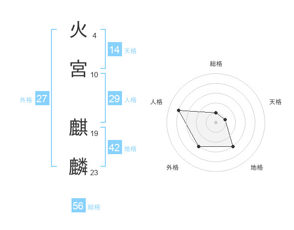 火宮 麒麟さんを姓名の画数から五運を鑑定