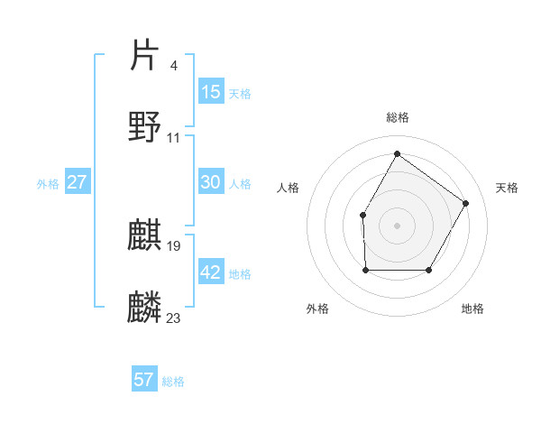 片野 麒麟さんを姓名の画数から五運を鑑定