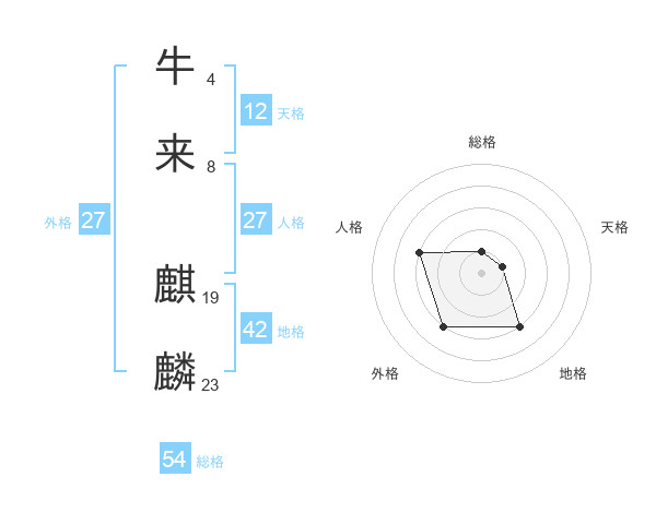 牛来 麒麟さんを姓名の画数から五運を鑑定