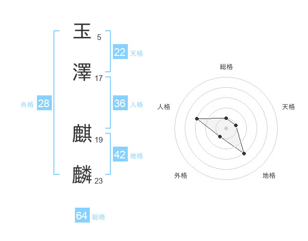 玉澤 麒麟さんの総格は64画の1点!