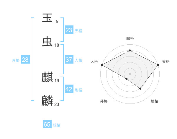 玉虫 麒麟さんの総格は65画の4点!