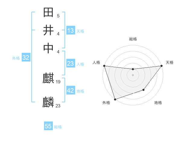 田井中 麒麟さんの総格は55画の1点!