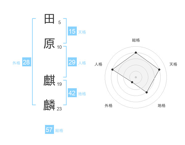 田原 麒麟さんの総格は57画の4点!
