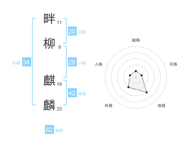 畔柳 麒麟さんの総格は62画の1点!