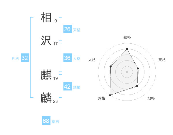 相沢 麒麟さんを姓名の画数から五運を鑑定