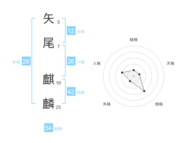 矢尾 麒麟さんの総格は54画の1点!