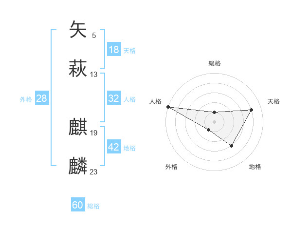 矢萩 麒麟さんを姓名の画数から五運を鑑定