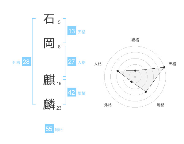 石岡 麒麟さんの天格は13画の5点!