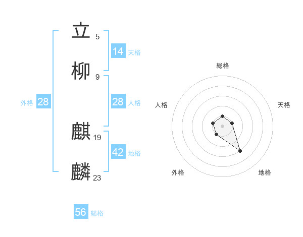 立柳 麒麟さんを姓名の画数から五運を鑑定