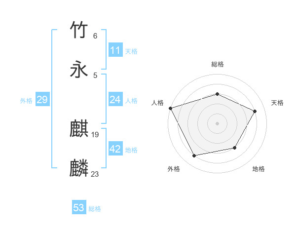 竹永 麒麟さんの総格は53画の3点!