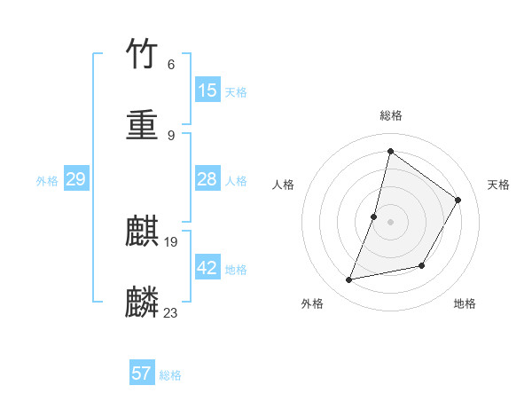 竹重 麒麟さんの総格は57画の4点!