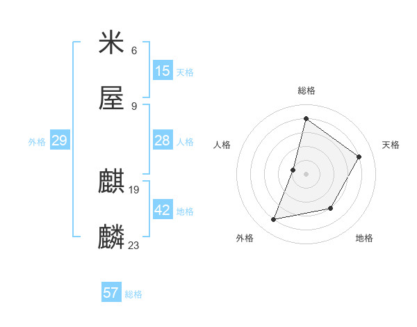 米屋 麒麟さんの総格は57画の4点!