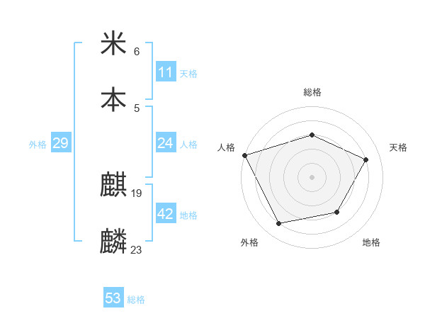 米本 麒麟さんを姓名の画数から五運を鑑定