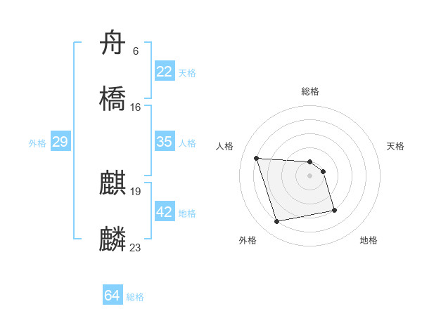 舟橋 麒麟さんの総格は64画の1点!