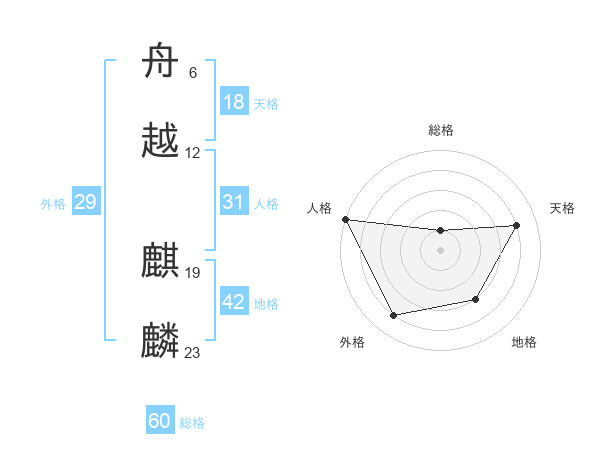 舟越 麒麟さんの総格は60画の1点!