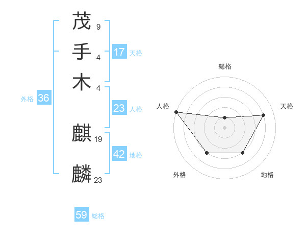 茂手木 麒麟さんを姓名の画数から五運を鑑定
