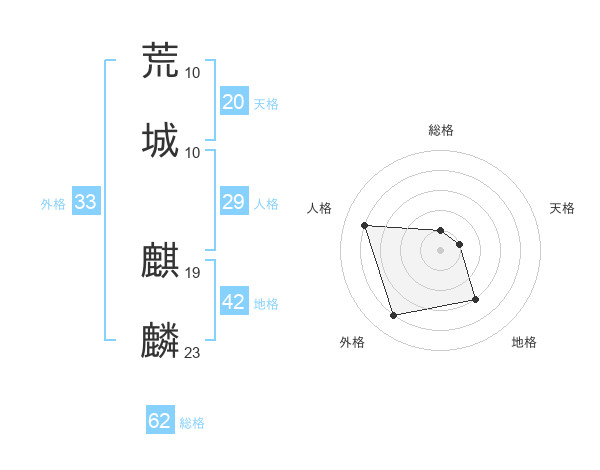 荒城 麒麟さんを姓名の画数から五運を鑑定