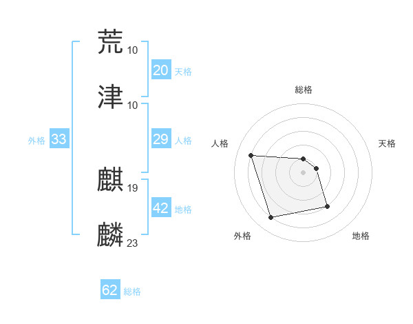 荒津 麒麟さんの外格は33画の4点!