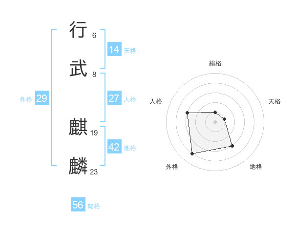 行武 麒麟さんを姓名の画数から五運を鑑定