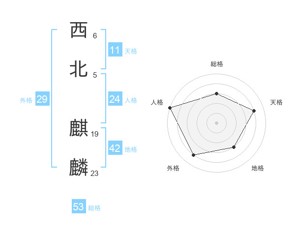 西北 麒麟さんの総格は53画の3点!