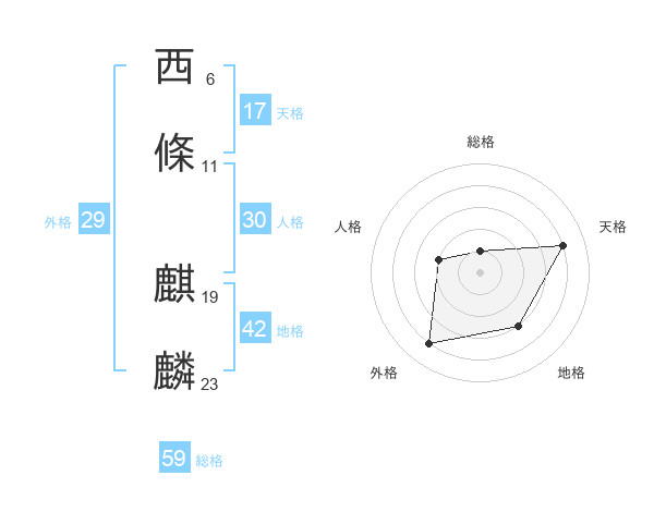 西條 麒麟さんの総格は59画の1点!
